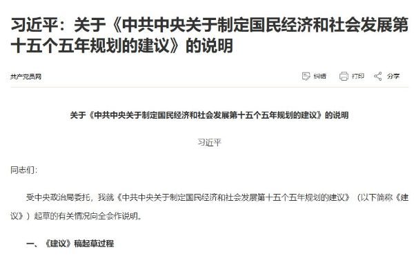 习近平:关于《中共中央关于制定国民经济和社会发展第十五个五年规划的建议》的说明
